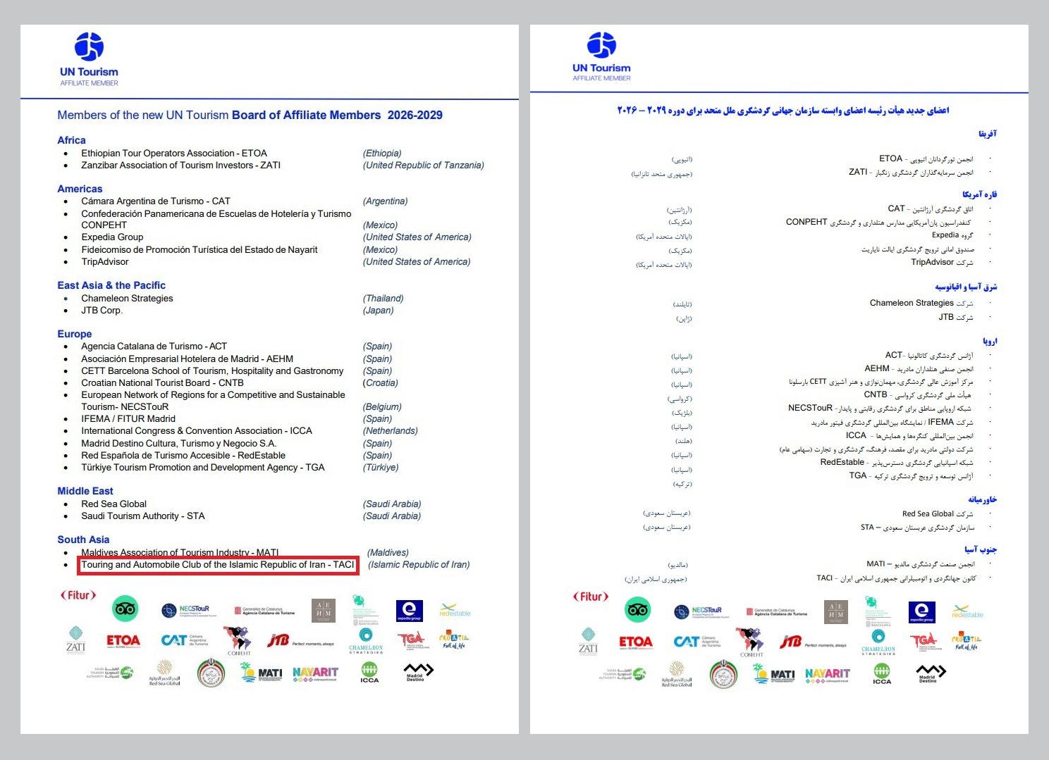 اعلام فهرست هیئترئیسه جدید UN Tourism؛